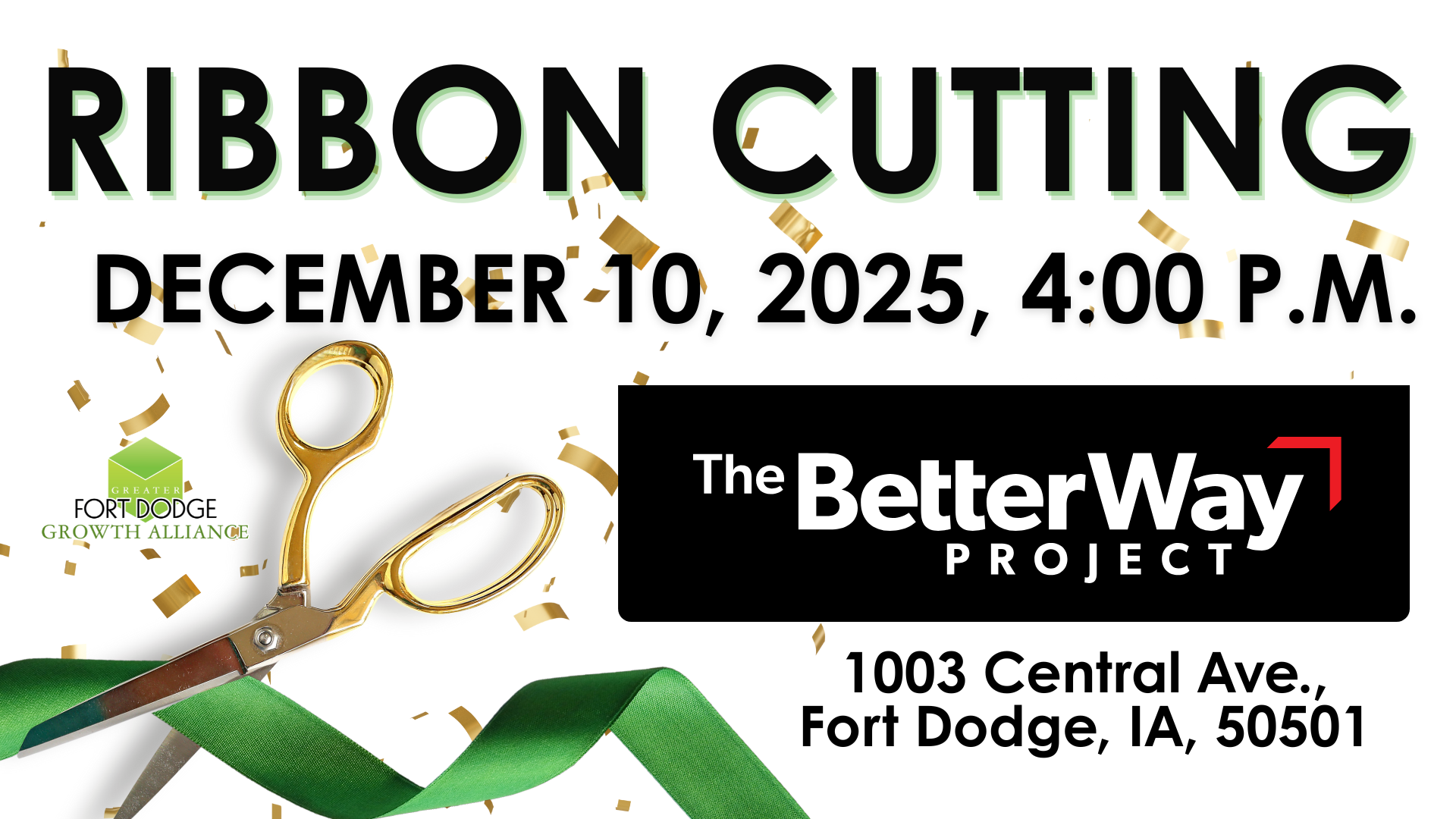 Join us as we celebrate The Better Way Project and its exciting new chapter with the recent acquisition of the Carver Building! A ribbon cutting will be held on Tuesday, December 10, 2025, at 4:00 p.m. All are welcome to attend and show support.