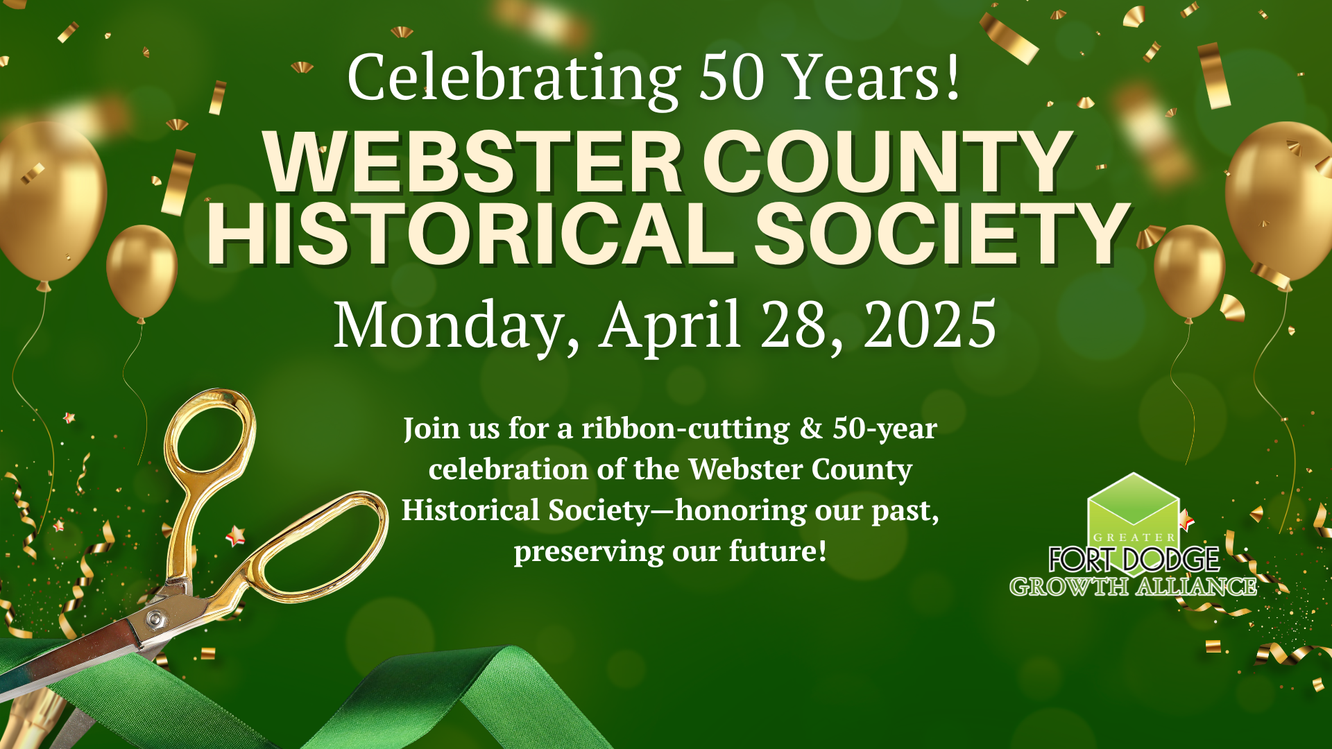 Join us as we celebrate 50 years of the Webster County Historical Society with a special ribbon-cutting ceremony! This milestone event honors our commitment to preserving and promoting the rich history of Webster County. Jeanine Nemitz and Steve Kersten will share insights about our archival collection, highlighting the stories and artifacts that make our county's past so special. Enjoy refreshments as we reflect on five decades of historical preservation and look ahead to the future. We hope to see you there!